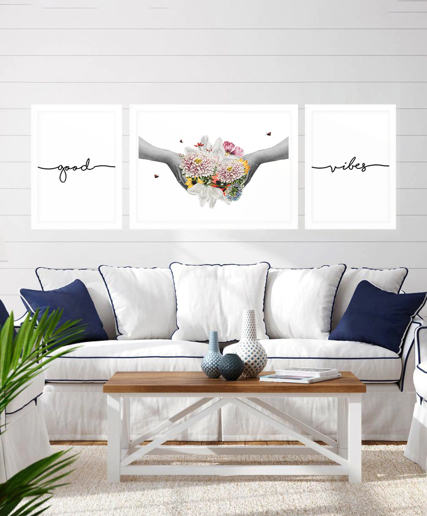 Cuadros decorativos con lámina en papel de alto gramaje, marco y vidrio.