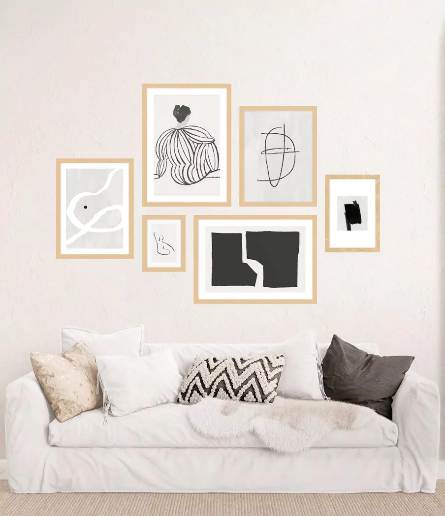 Incluye 2 cuadros de 35x50, 2 de 30x40, 1 de 20x30 y 1 de 15x21 cm.